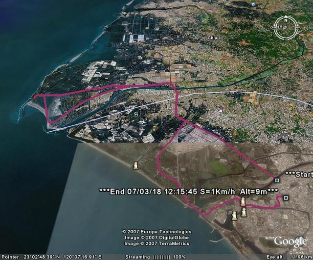 行程:台南市政府->中華西路->西港大橋->九塊厝->七股->曾文溪出海口->四草->安平->台南
