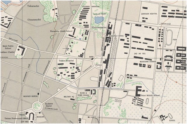 左下角的圓環是台南人熟悉的民生綠園(今為湯德章紀念公園)