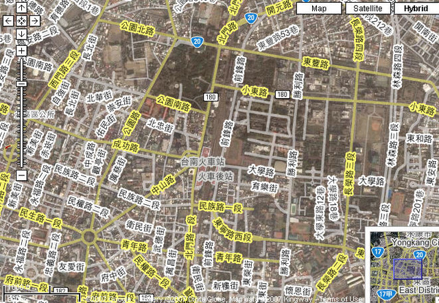 還有正中央的台南火車站和火車站右手邊的成功大學…