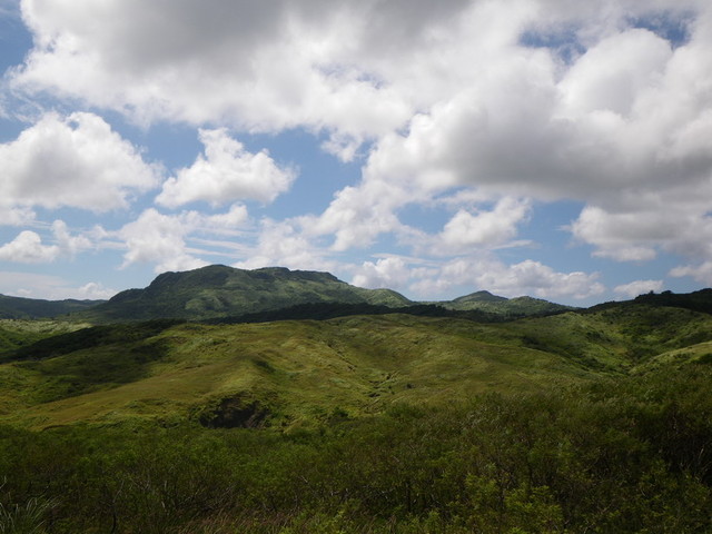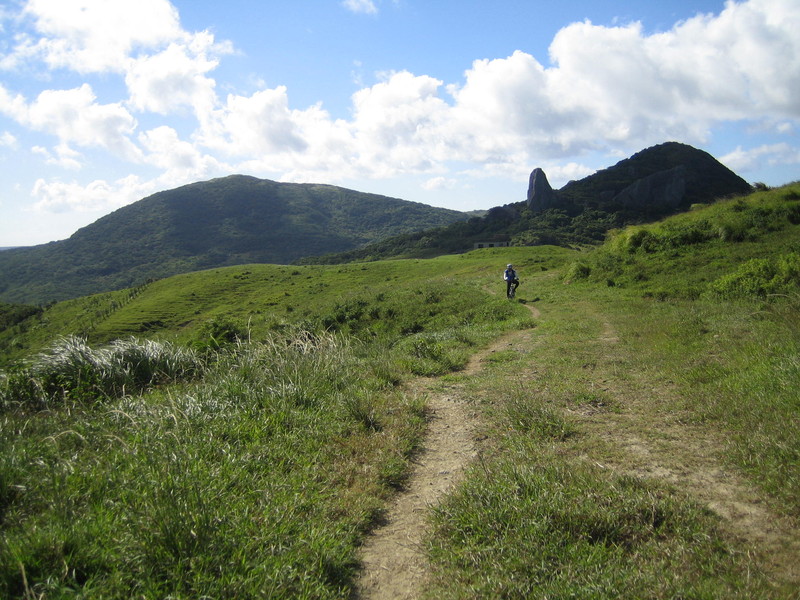 小尖山在側,不遠的前方正是大尖山,風吹著草皮如浪花般拍打著,