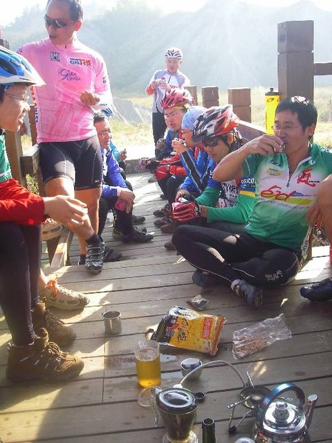 大伙兒分享著這一年來的騎乘心得,遠方吹來沁涼的微風,