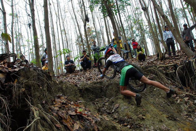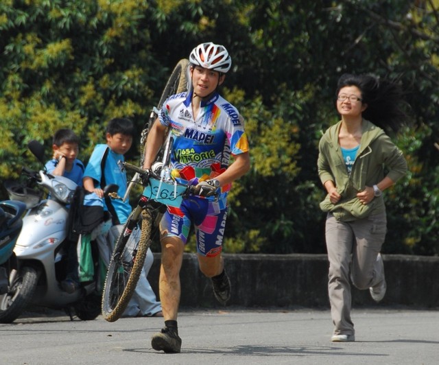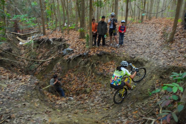 除了一不小心就會打滑之外,濕軟的泥土與落葉...種種都考驗著選手們的技巧