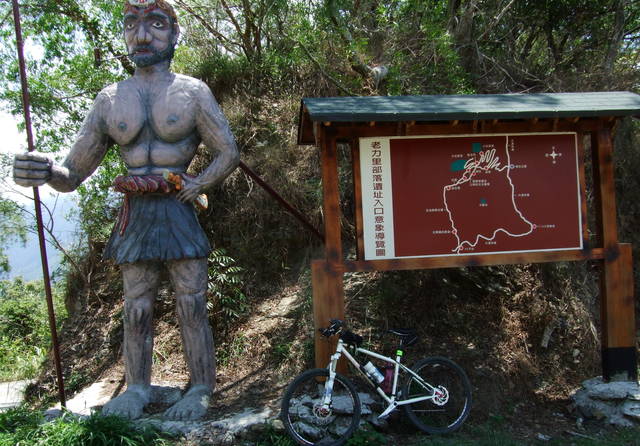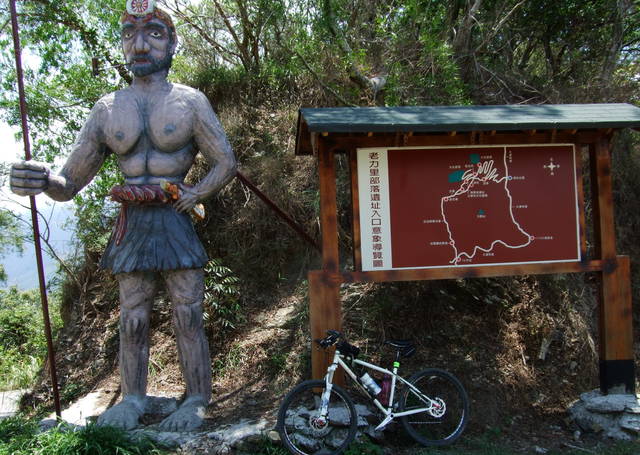 過了舊力里部落,會有一段單車滑行約五分鐘的下行路段,中途可以看到頭目雕像與部落遺址的導覽圖。