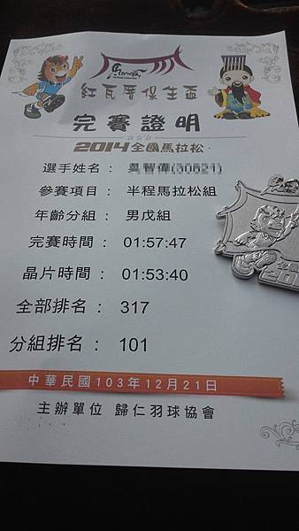 20141221 紅瓦厝保生盃是我的第五半馬,
