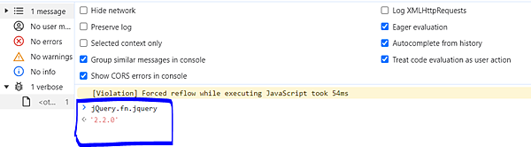 要怎麼知道自已是用什麼版本的JQuery,先到Chrome的console mode輸入 jQuery.fn.jquery
