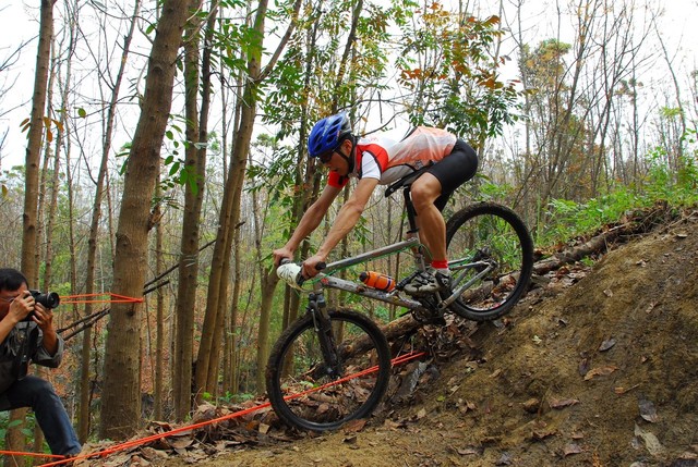 除了一不小心就會打滑之外,濕軟的泥土與落葉...種種都考驗著選手們的技巧