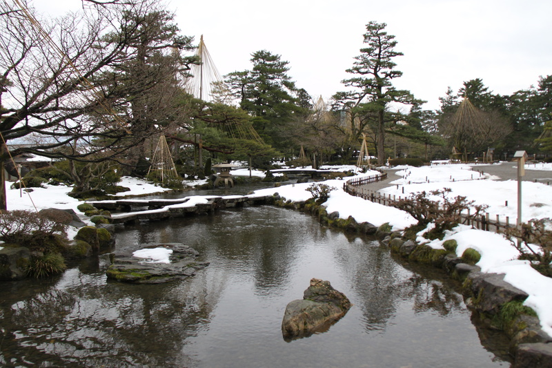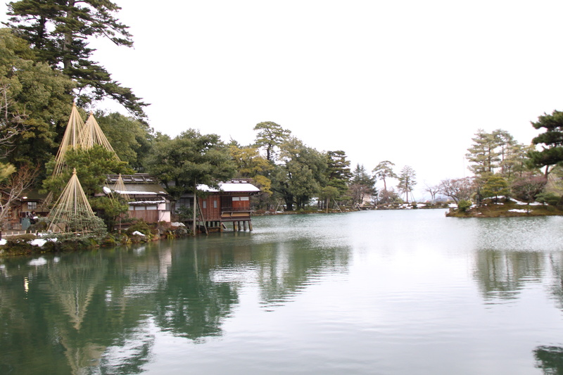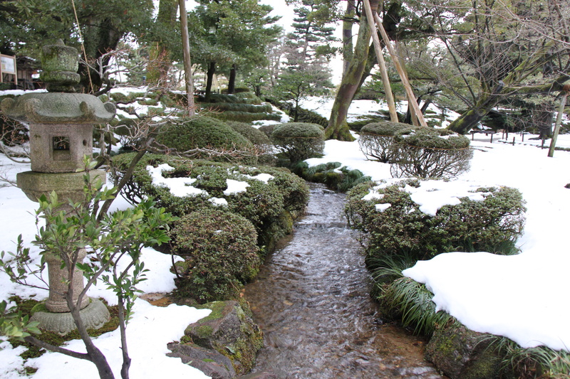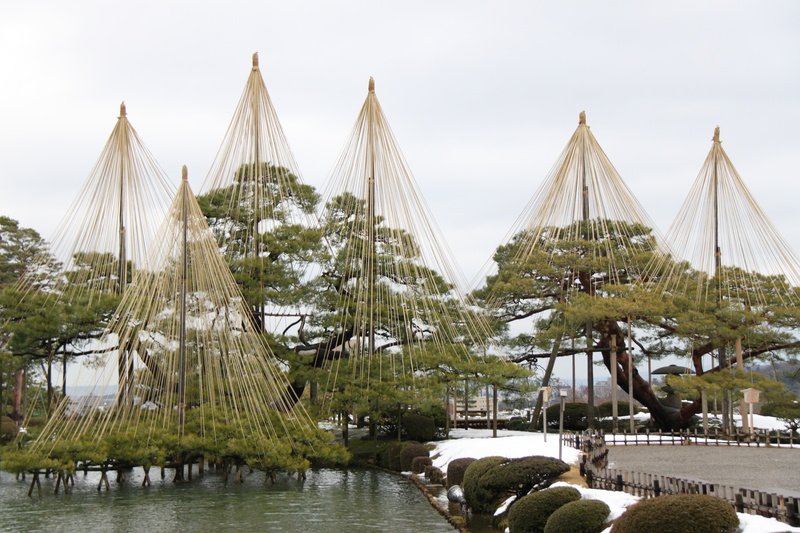 每年十一月之後園內會為唐崎松搭起雪吊,更是「兼六園」的特色之一,